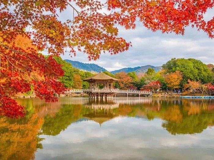 - Kim Các Tự (Kinkaku-ji) – Ngôi chùa dát vàng lớn nhất Nhật Bản. Được biết đến với sự lộng lẫy và tráng lệ, Chùa Vàng Kinkaku-ji tỏa sáng bởi hai tầng trên cùng được phủ lớp vàng lá bóng loáng rực rỡ, biểu trưng cho nghệ thuật kiến trúc độc đáo và lịch sử phong phú của Nhật Bản. Vào mùa thu, từng rặng phong lá đỏ rực khiến ngôi chùa trở nên yên bình và thanh tĩnh. Nơi đây đã được UNESCO công nhận là Di Sản Văn Hoá Thế Giới